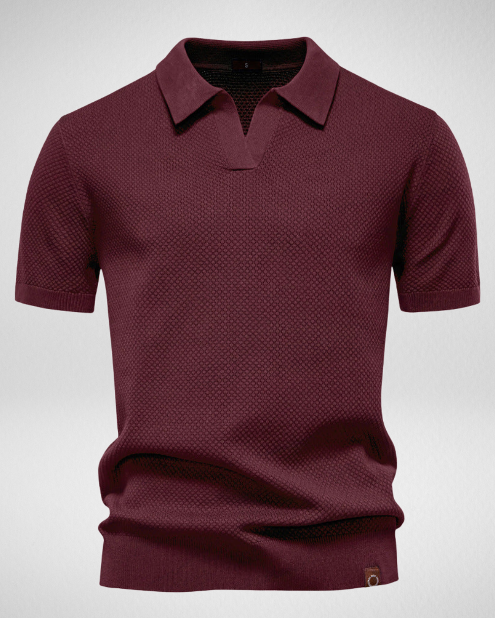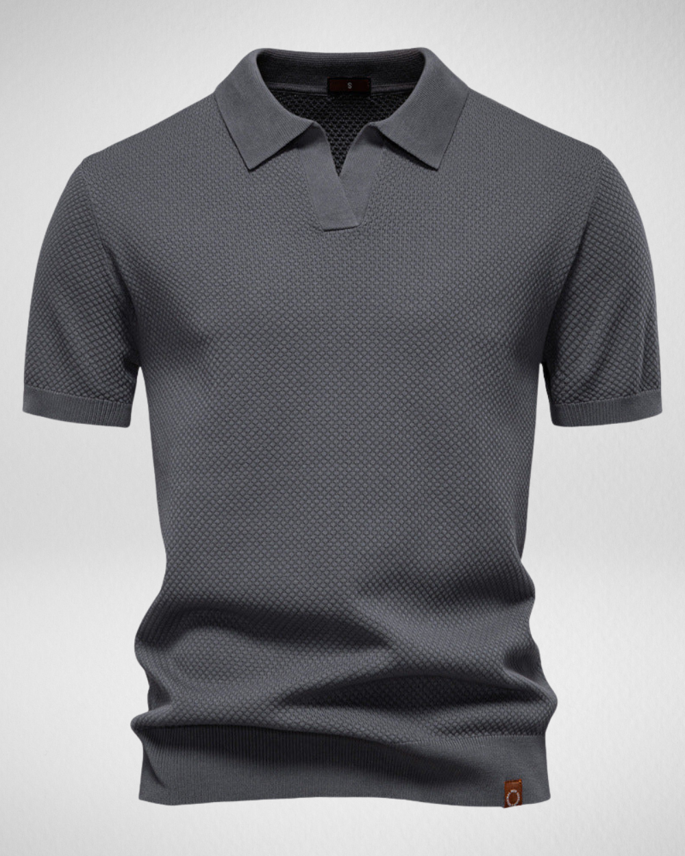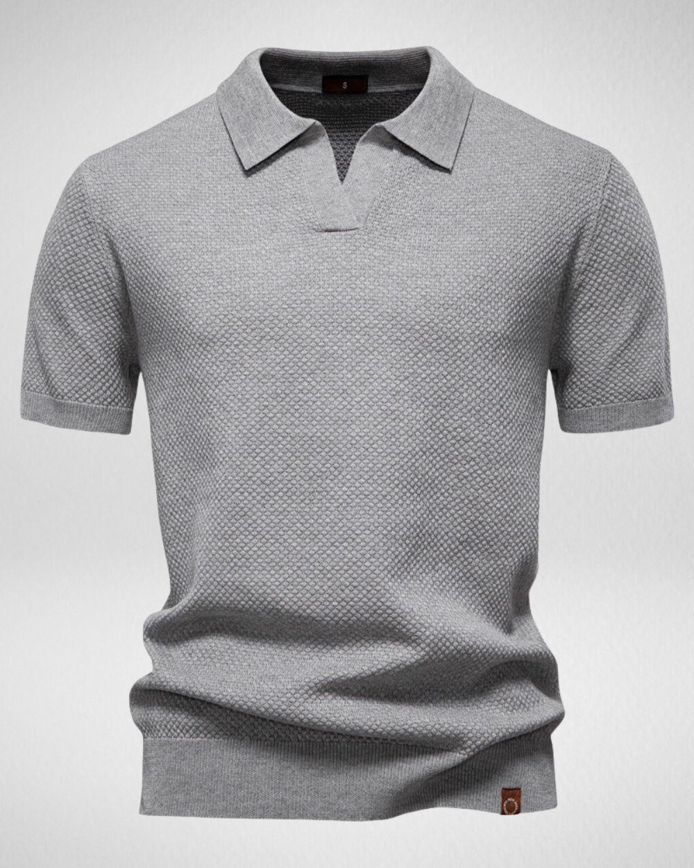 Een verfijnd poloshirt met moderne structuur dat moeiteloos stijl en comfort samenbrengt voor de volwassen man.