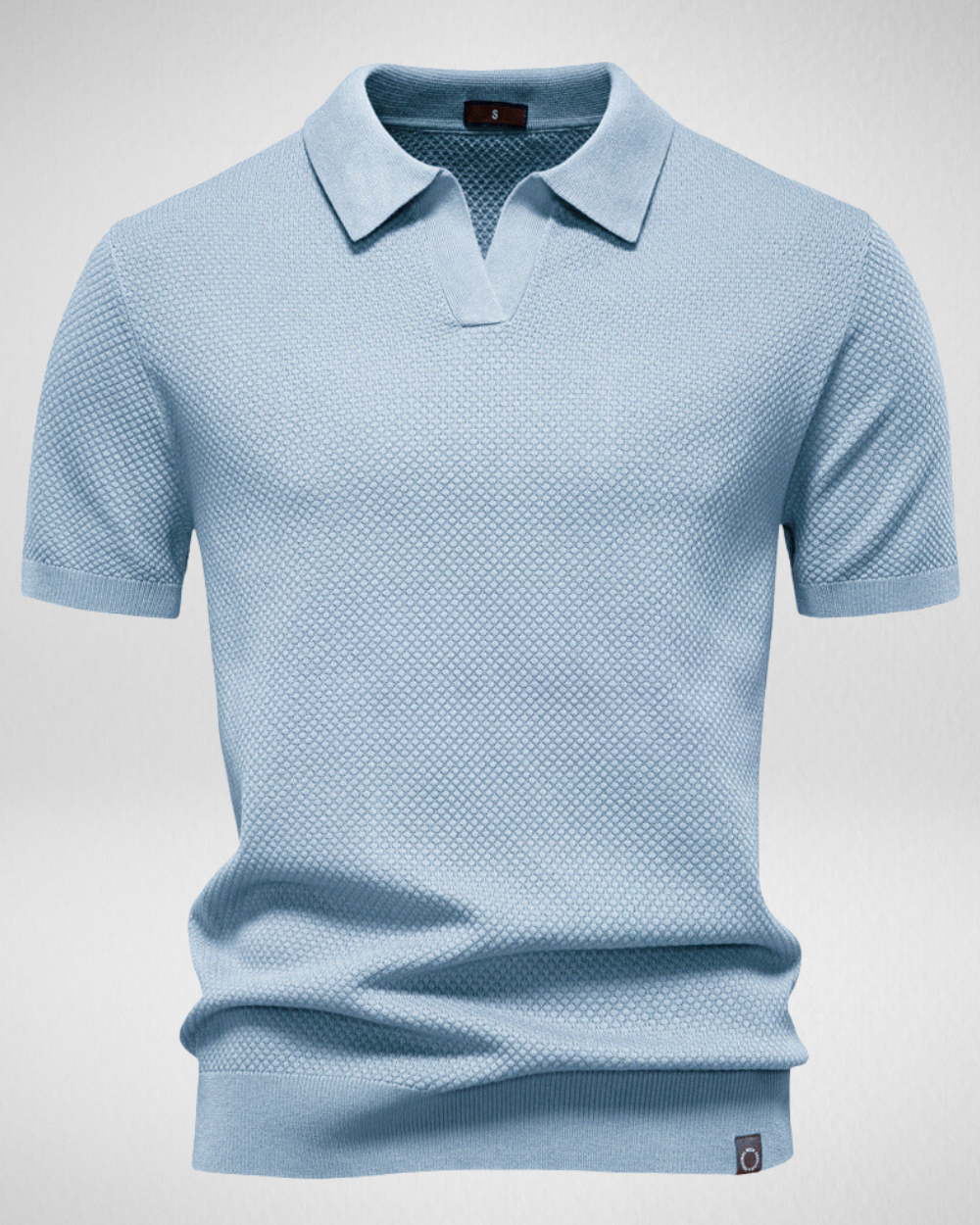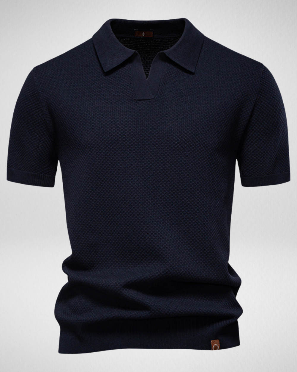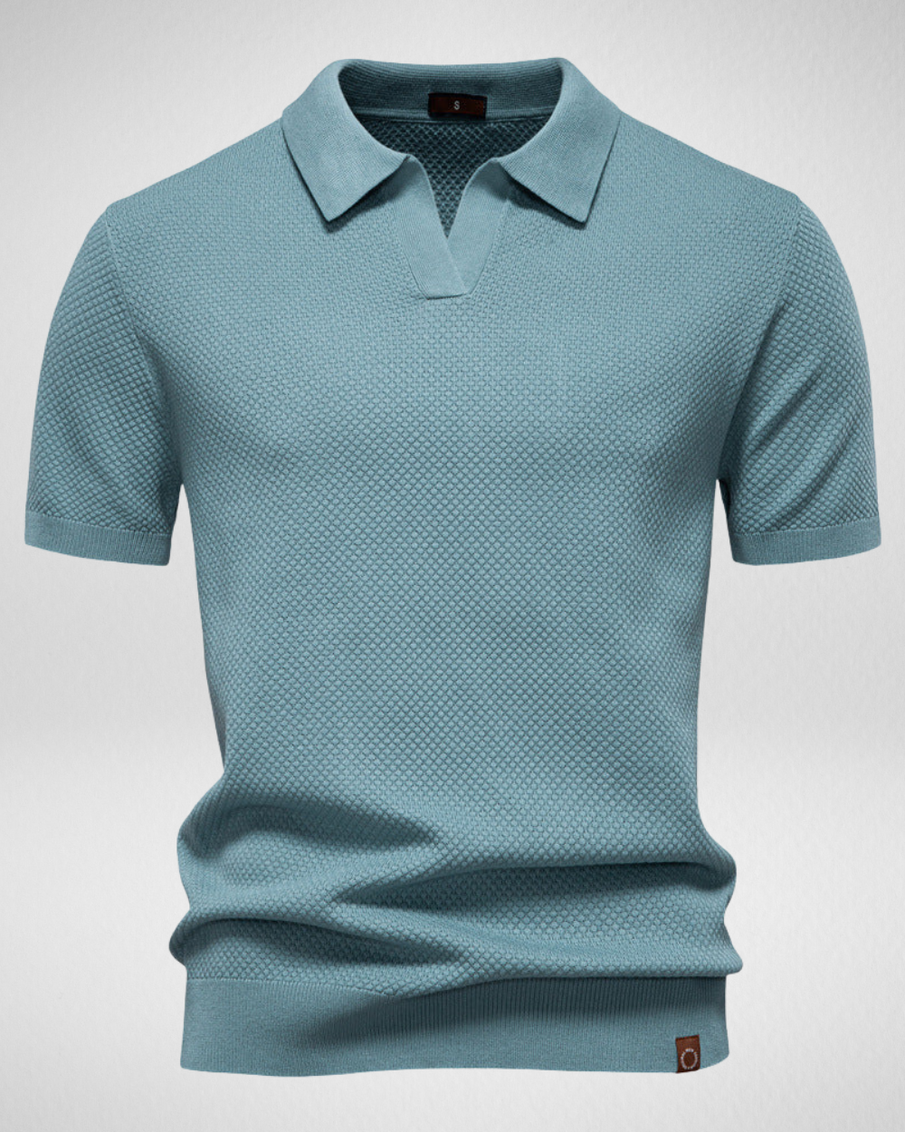 Een verfijnd poloshirt met moderne structuur dat moeiteloos stijl en comfort samenbrengt voor de volwassen man.
