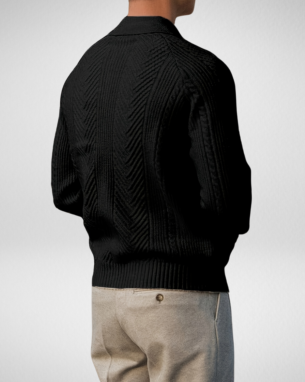 Heren Gebreide Polo Trui – Structuurpatroon – Vintage Voorjaar/Herfstlook