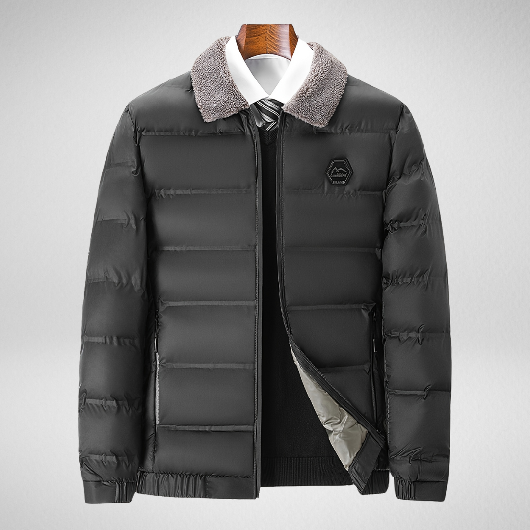 Heren Gewatteerde Jas met Bontkraag – Warm & Stijlvol
