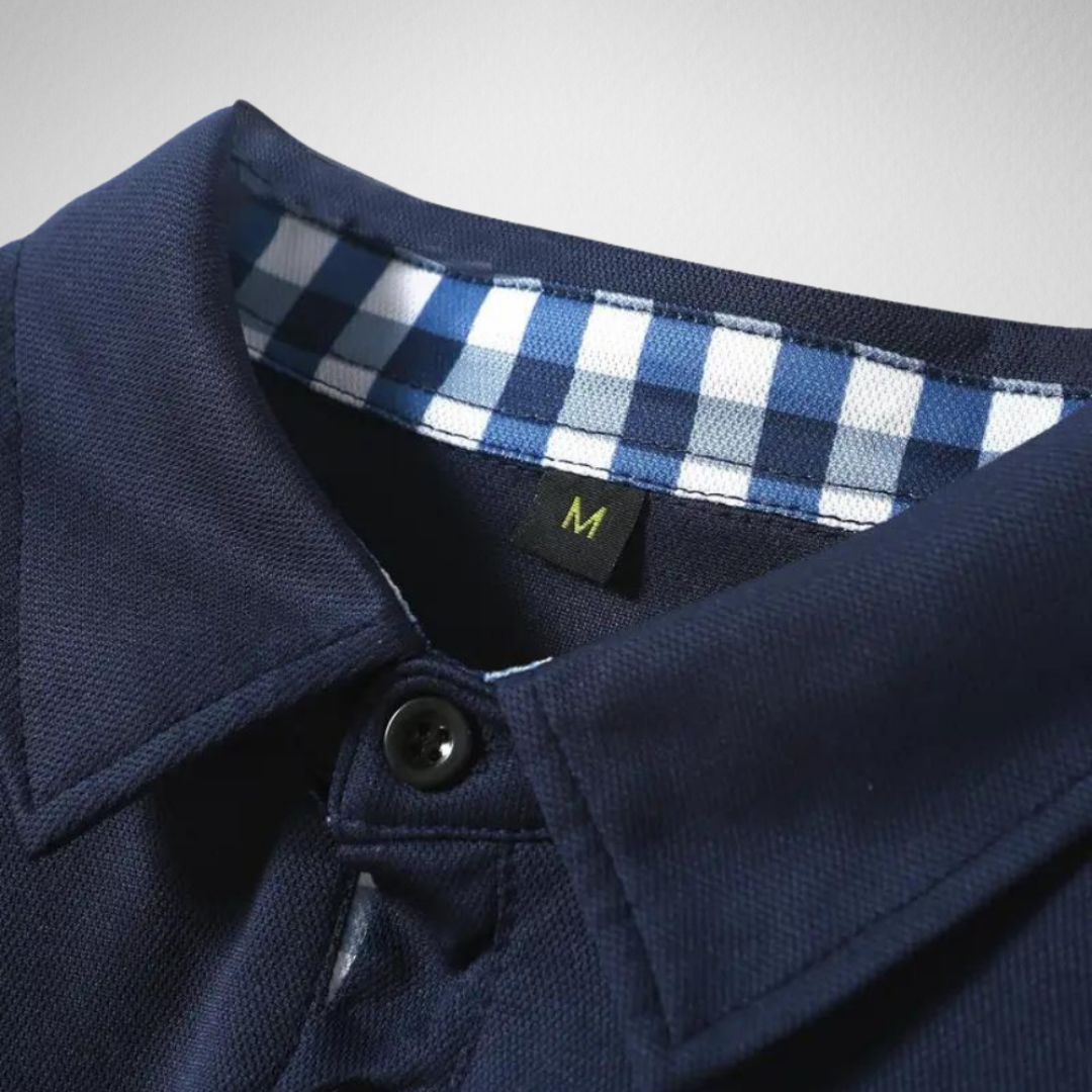 Heren Polo Shirt – Lange Mouw – Geruit Detail Look