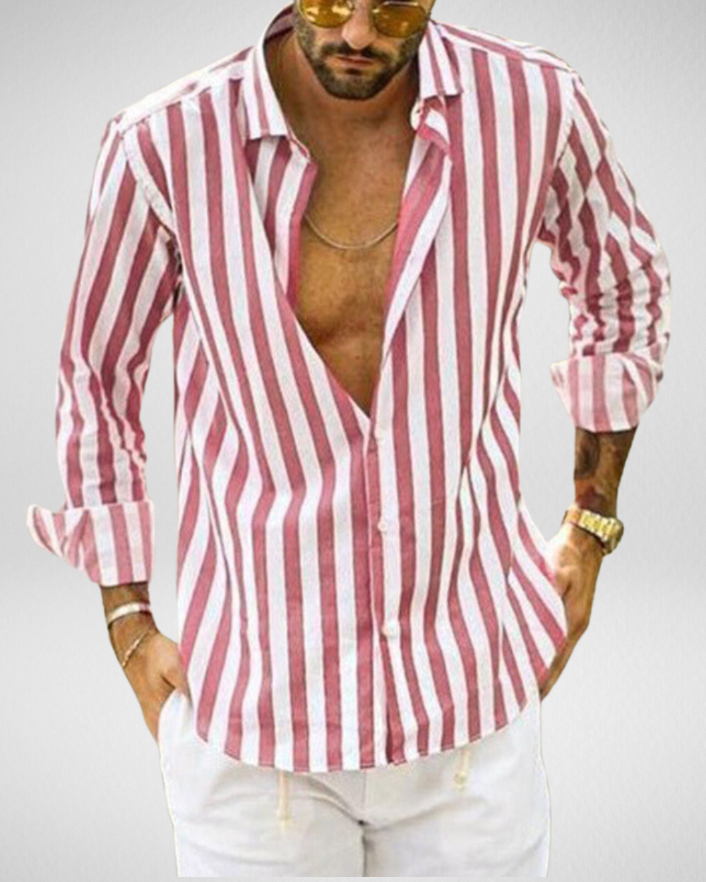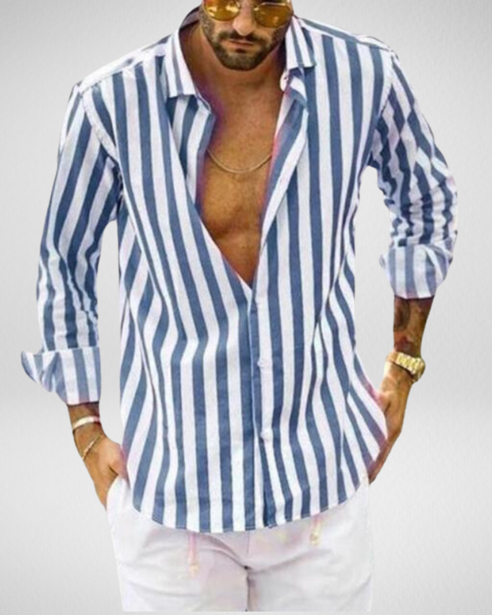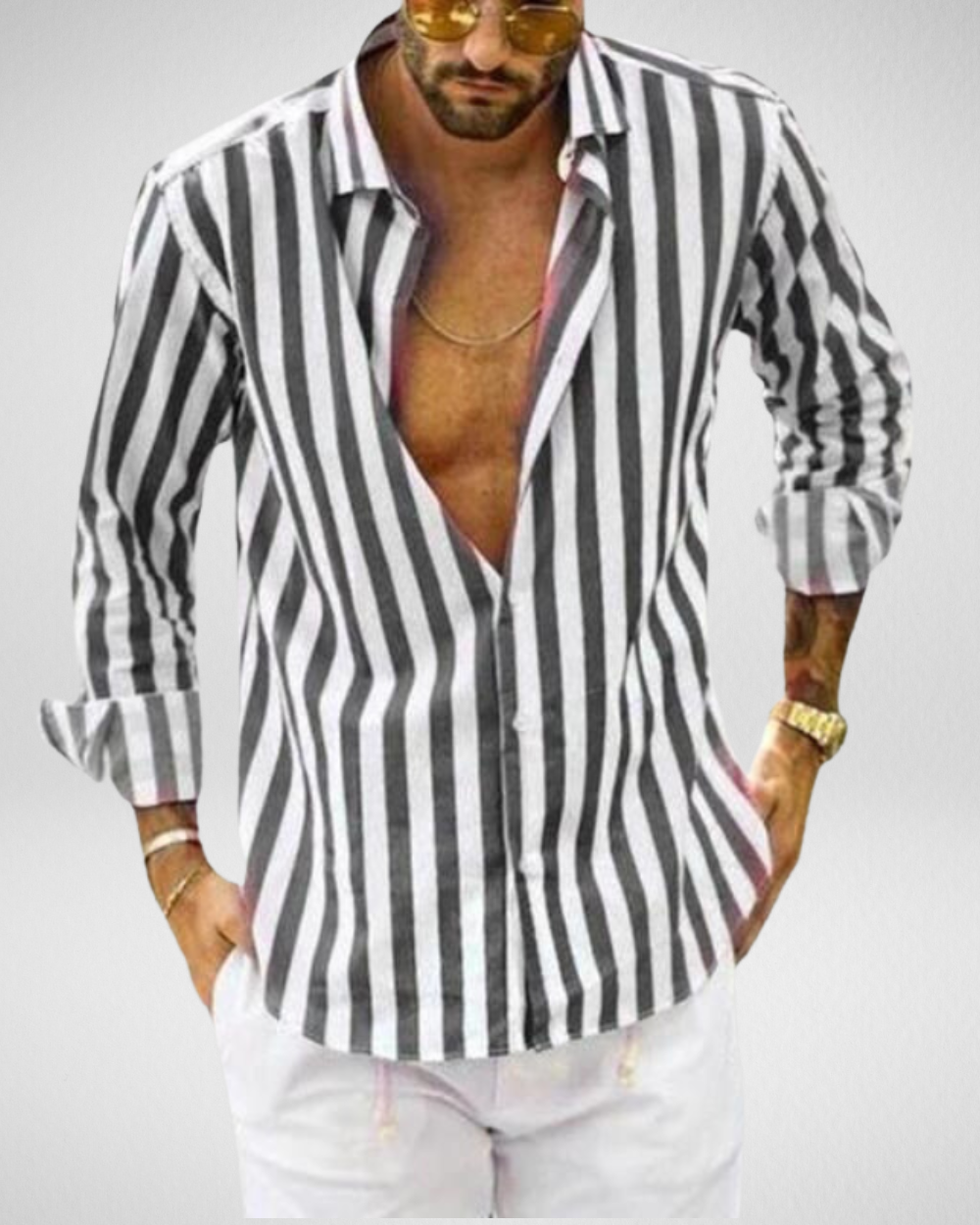 Geef je vrijetijdslook een upgrade met dit moderne gestreepte overhemd – luchtig, slank gesneden en ideaal voor warme dagen.