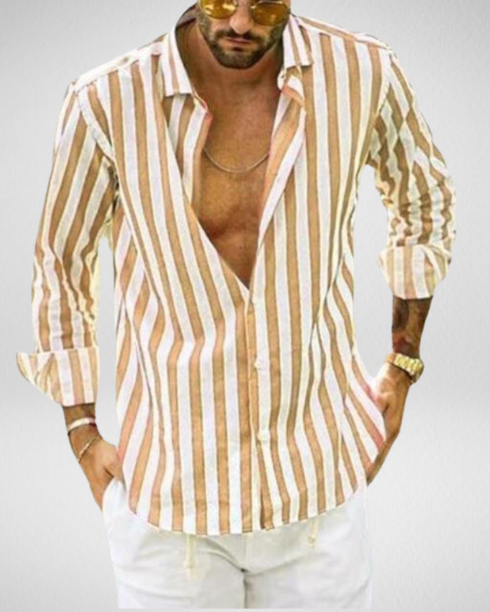 Heren Overhemd – Linnenlook & Verticale Strepen – Casual Zomerstijl