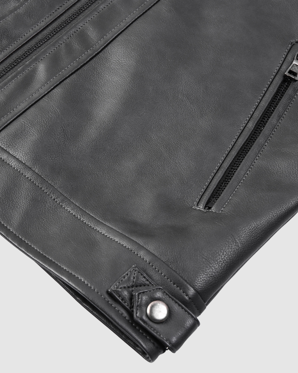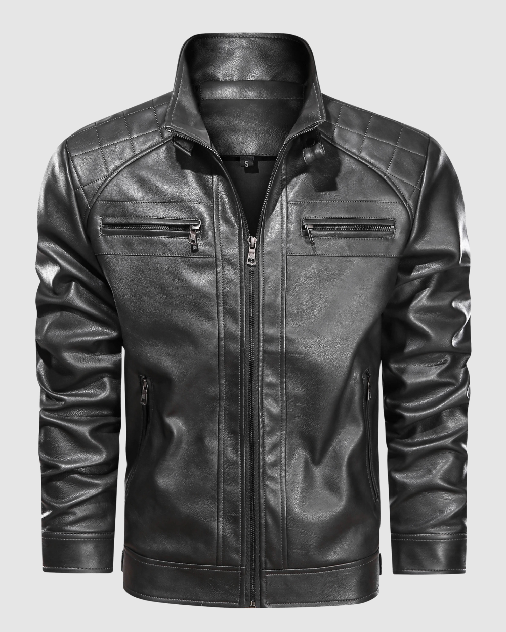 Een moderne PU leren jas die elke outfit een stoere en stijlvolle uitstraling geeft. Met zijn strakke lijnen en praktische ritszakken is dit een veelzijdig jack voor dagelijks gebruik.