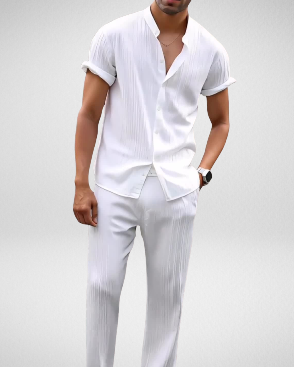 Een luchtige en stijlvolle set ontworpen voor comfort en rust tijdens warme zomerdagen.