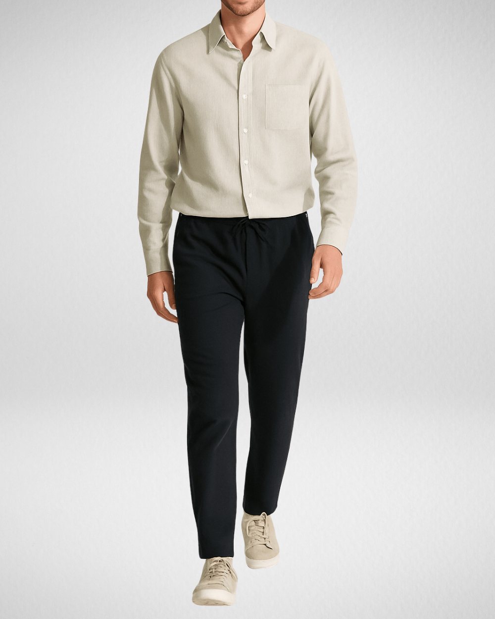 De perfecte combinatie van comfort en tijdloze eenvoud. Deze set met lange mouwen en trekkoordbroek biedt een ontspannen pasvorm en een natuurlijke, luchtige uitstraling β ideaal voor warme dagen of een casual zomerse look.