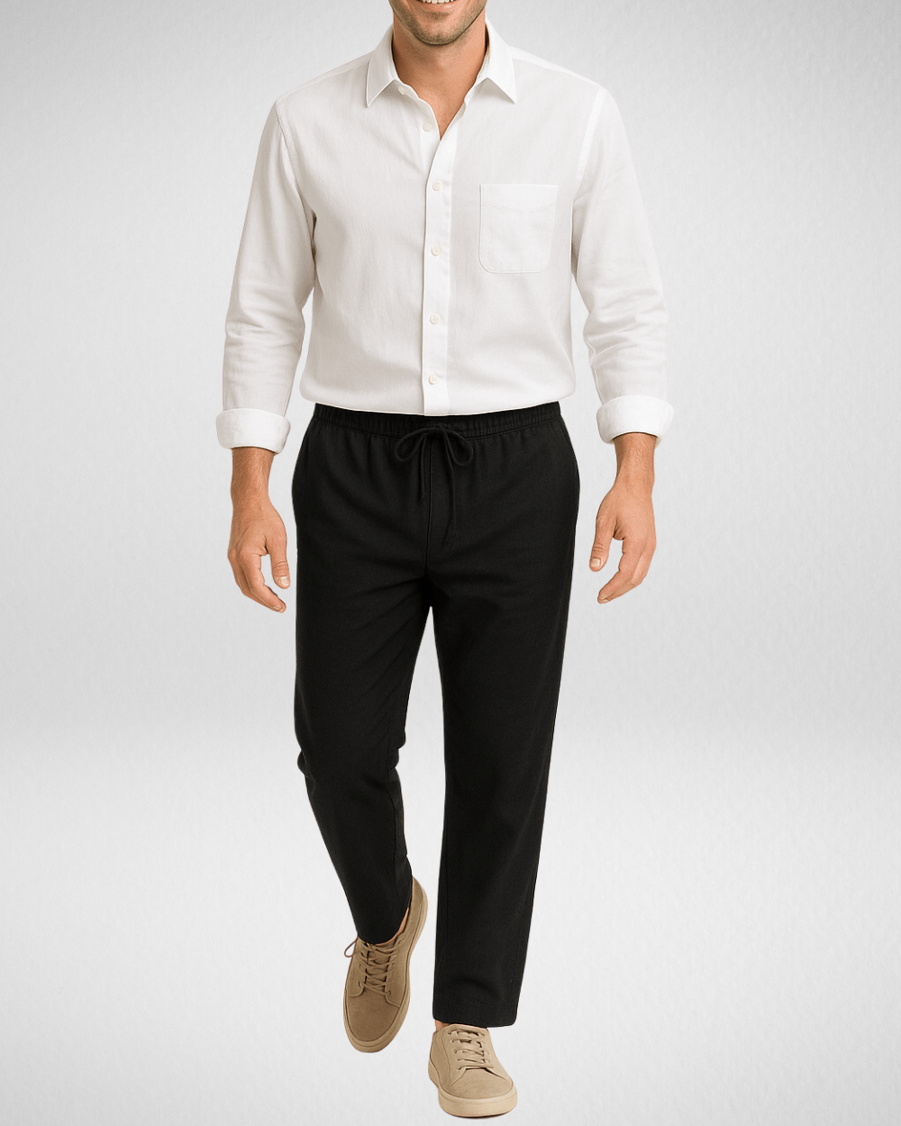 - Functioneel of visueel detail: Elastische broek met verstelbare tailleband voor optimale bewegingsvrijheid