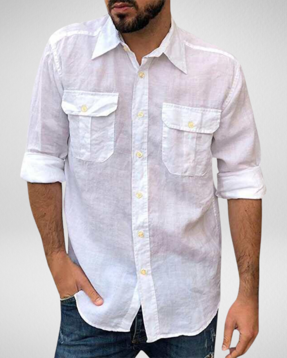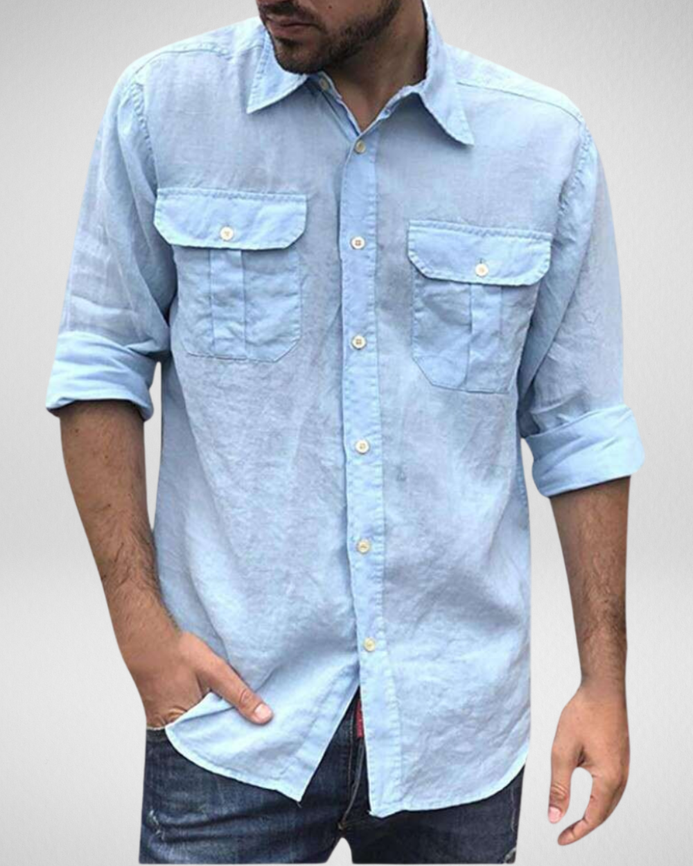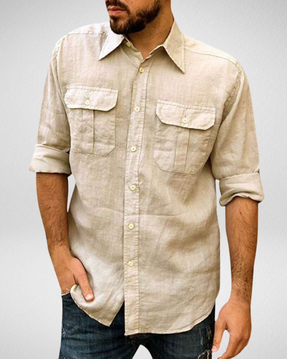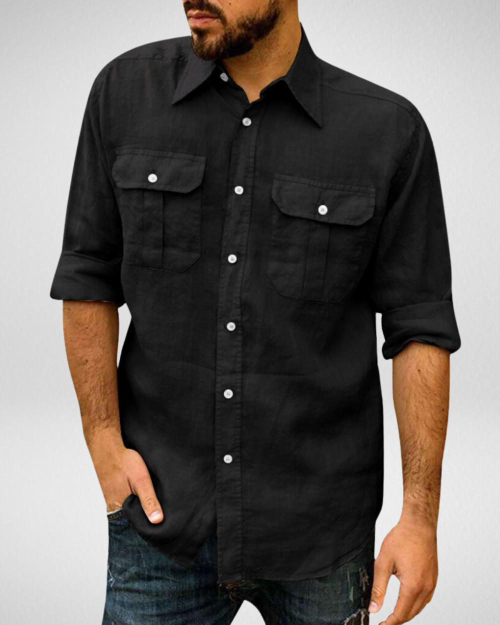 - Functionele details: Voorzien van twee praktische borstzakken met klepsluiting en klassieke knoopsluiting.